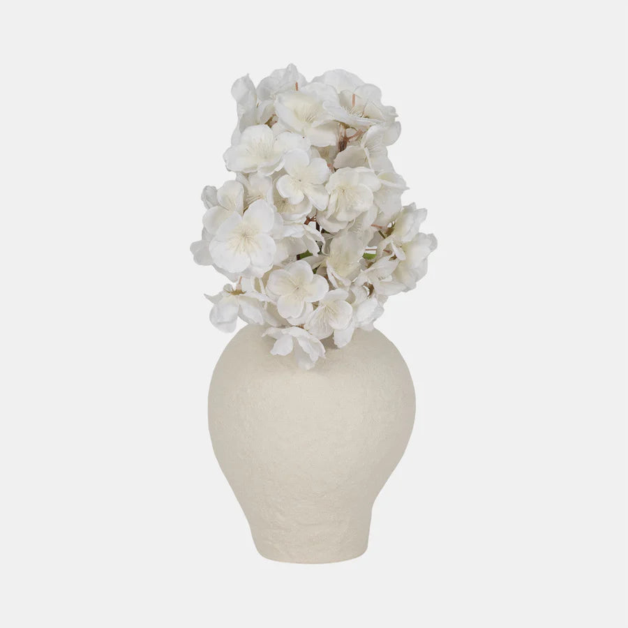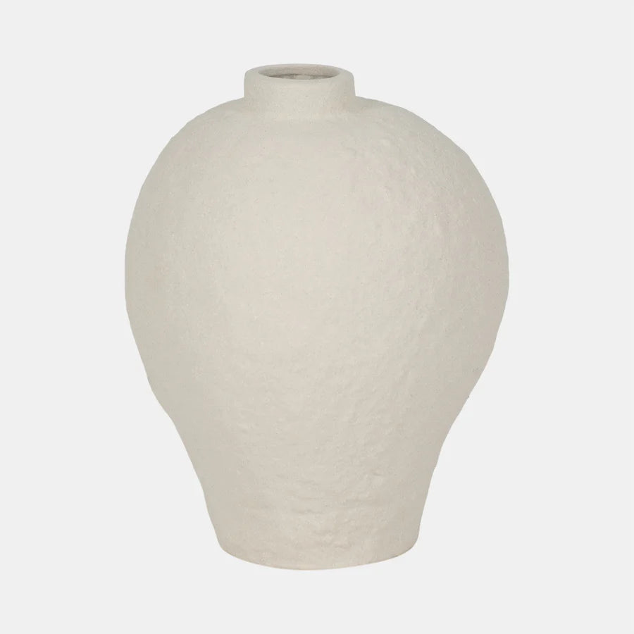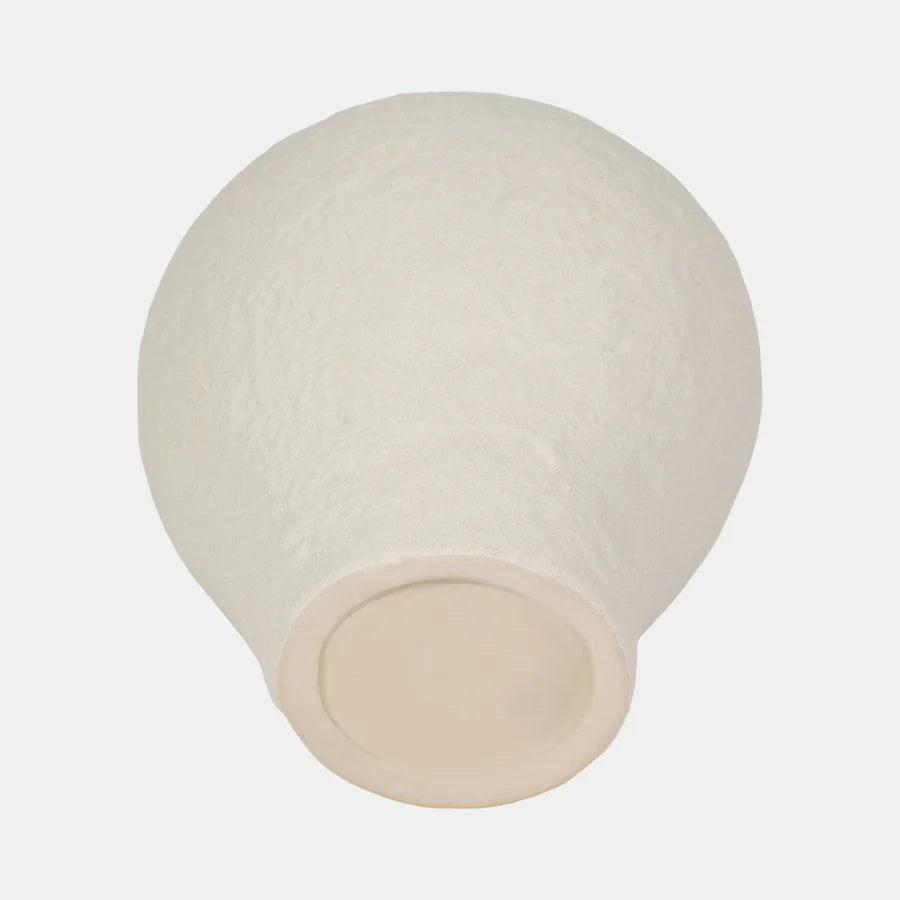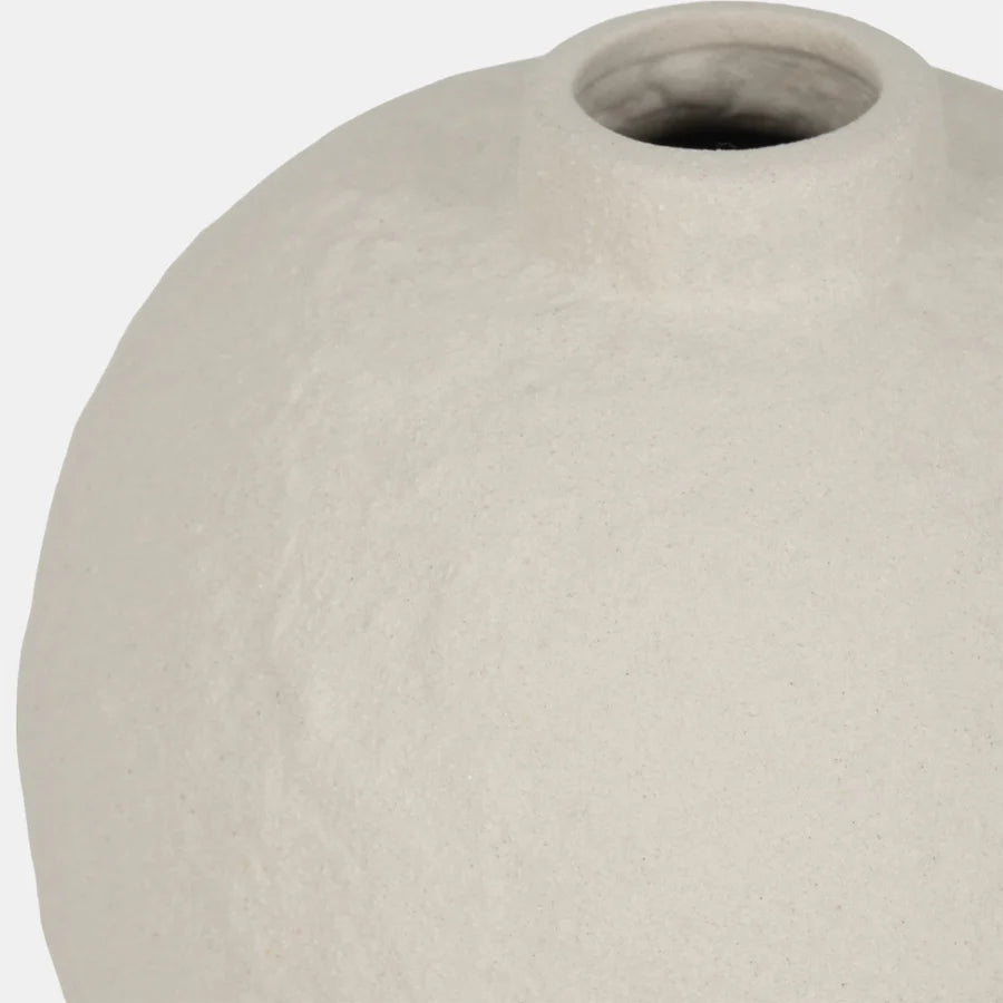 Découvrez ce vase en blanc cassé, où texture et mouvement s’unissent pour créer une pièce pleine de caractère, qui rappelle des paysages naturels, comme des dunes ou des vagues.