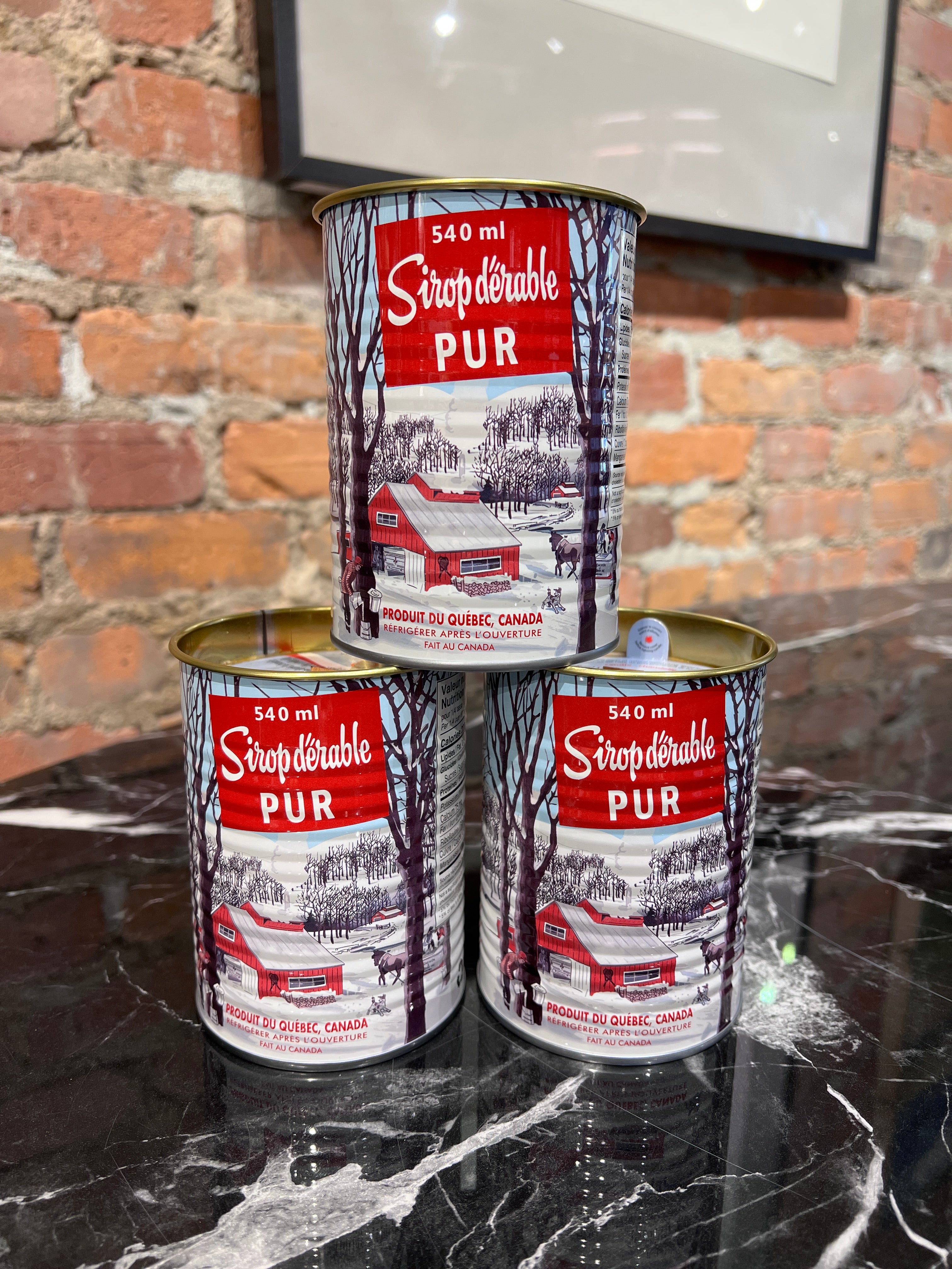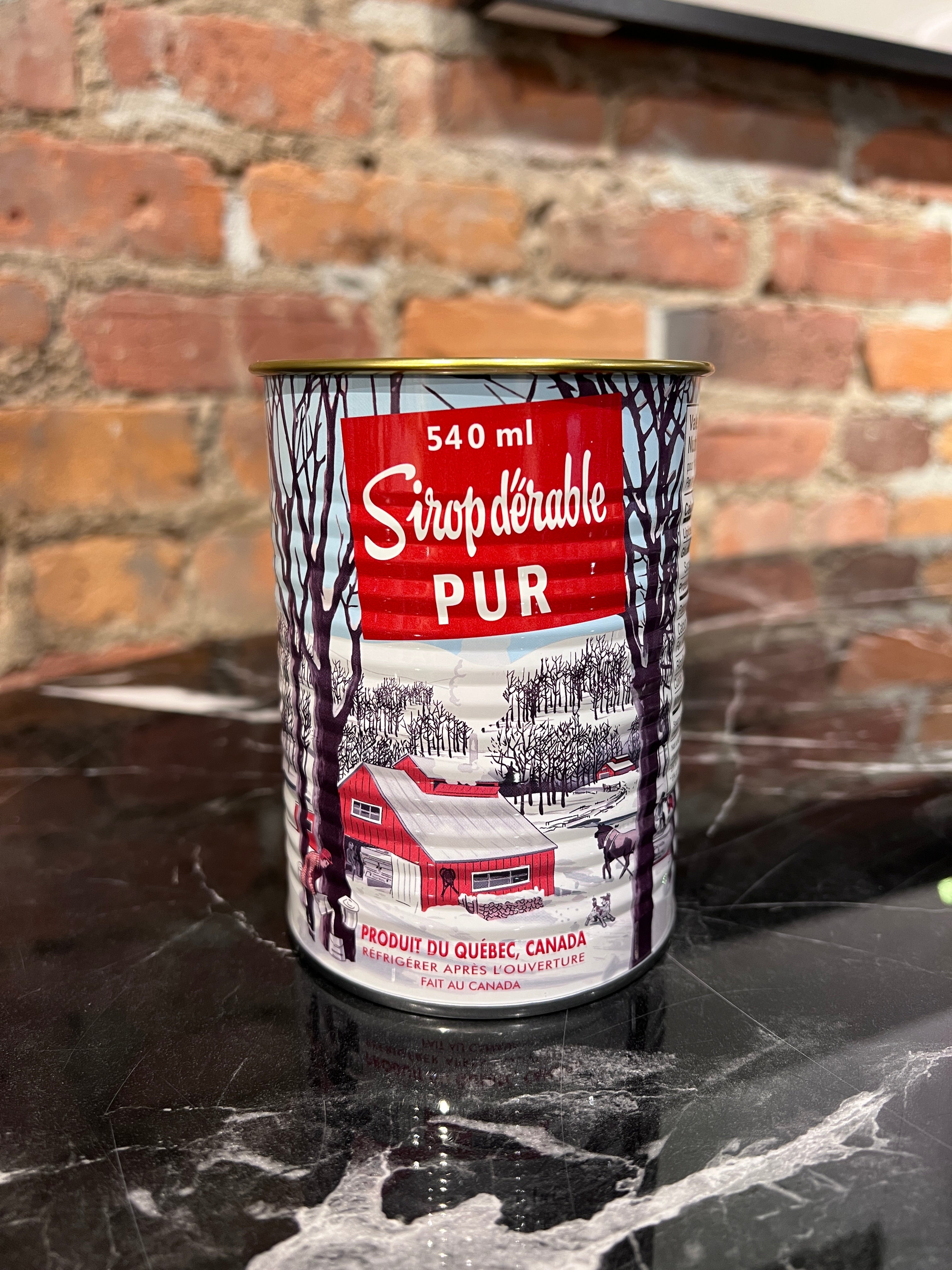 Découvrez notre bougie sirop d'érable faite au Canada avec du vrai parfum d'érable. Fabriquée avec un mélange de cire de soja et une mèche en bois véritable dans un contenant de conserve classique de sirop d'érable.